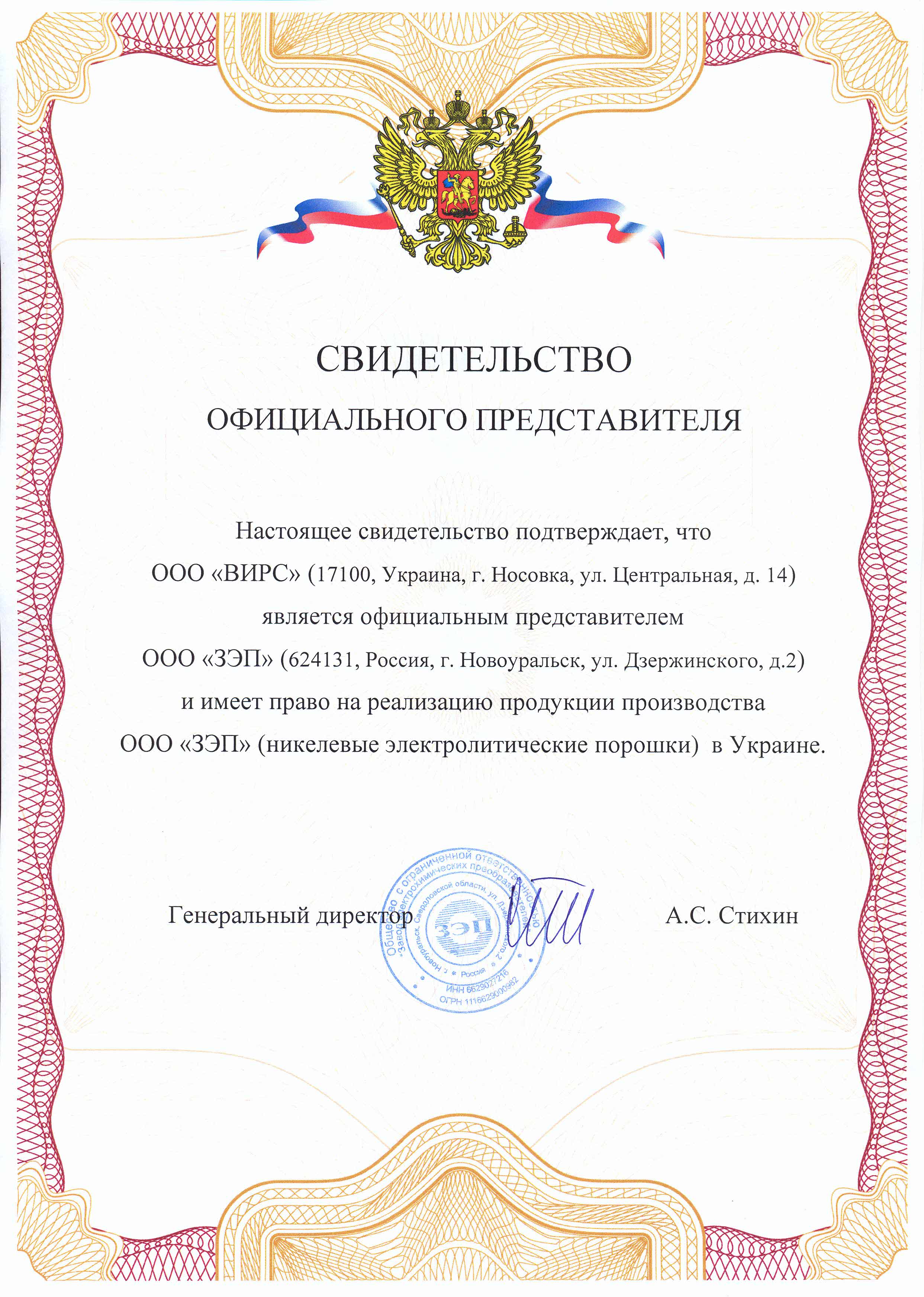 Свідоцтво офіційного представника
